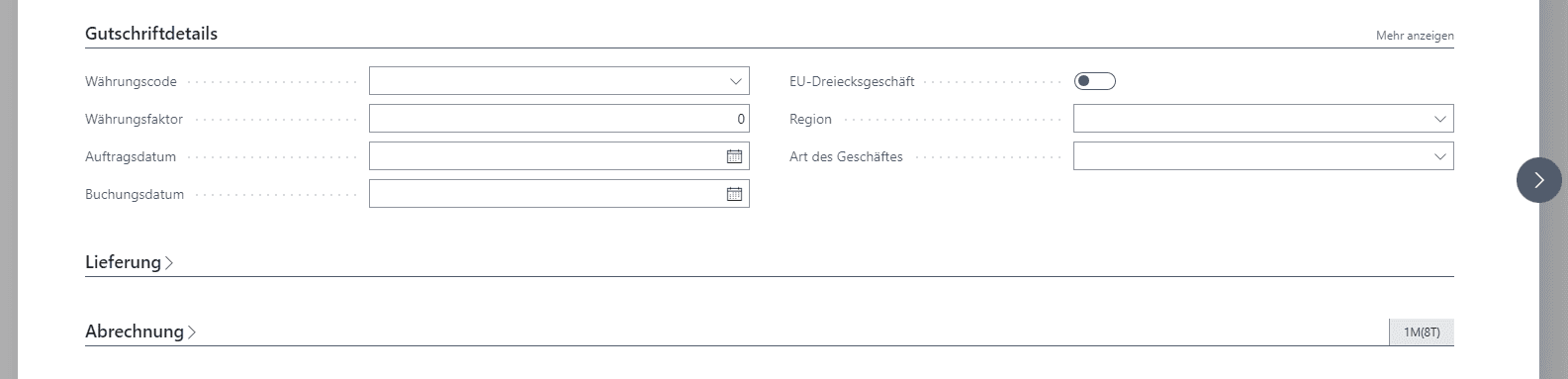 - Anzeigen: Schaltet die Verkaufsgutschrift in den Anzeigemodus.