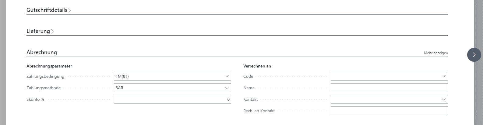 - Zahlungsbedingung: Bedingungen zur Zahlung des Belegs. Relation zu den Zahlungsbedingungen in Business Central.
